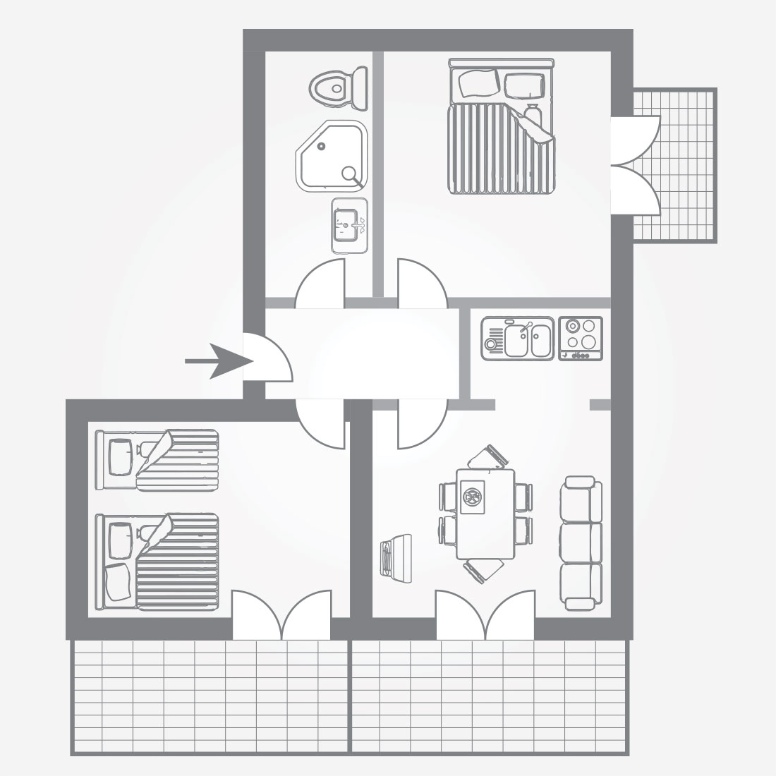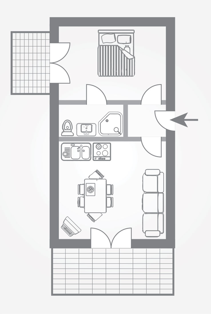 Possiamo offrire appartamenti per 2 e 4 persone, così come sistemazione in camere